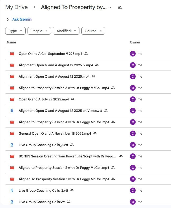 ✅ Live Group Coaching Call Recordings — 4 recorded Q&A sessions providing direct access to Dr. McColl's personalized guidance on abundance, manifestation, and alignment (video)