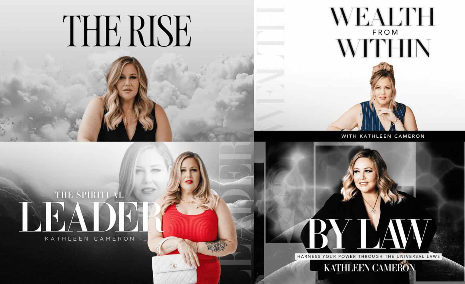 Ascendance Collection by Kathleen Cameron is a bundle of four complementary programs — The Rise, Wealth from Within, The Spiritual Leader, and By Law — plus a Visualization Bundle. The collection teaches the 12 Universal Laws, wealth consciousness, spiritual leadership, and personal transformation through Kathleen Cameron's methodology that combines spiritual science with practical strategy and embodiment practices.