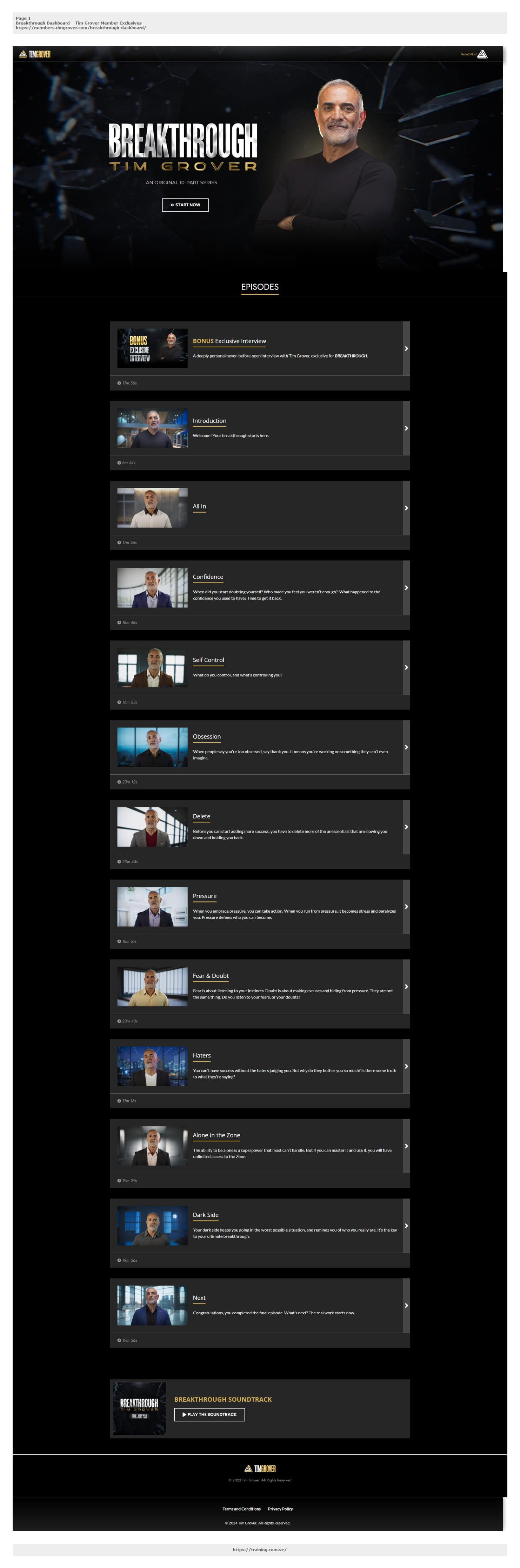 Breakthrough is a 10-part original video series from Tim Grover—the legendary performance coach who spent 15 years by Michael Jordan's side and trained Kobe Bryant, Dwyane Wade, and hundreds of elite athletes across the NBA, NFL, MLB, NHL, and Olympics. This isn't a physical training program; it's a masterclass on mental toughness, designed to give you the same psychological strategies Grover used to turn good athletes into unstoppable champions. For those who can't work with Tim face-to-face, Breakthrough delivers his battle-tested principles directly to you.