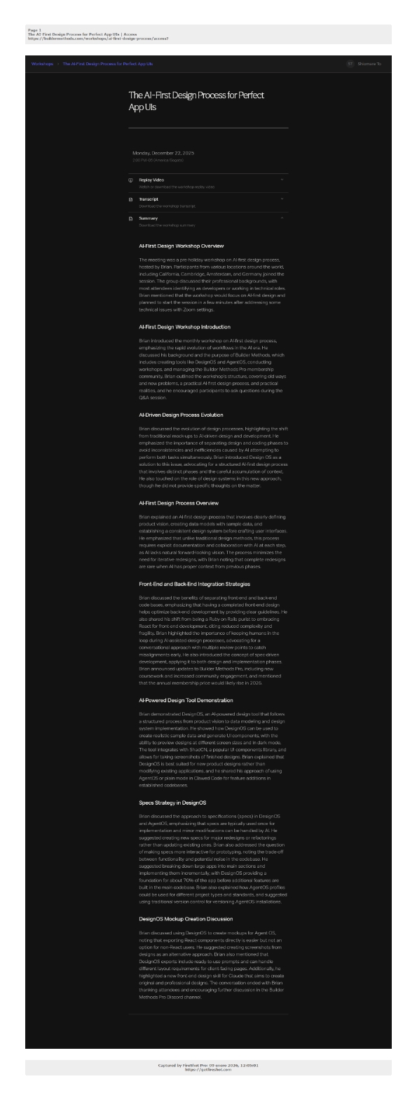 • Lesson: The AI-First Design Process for Perfect App UIs — Access (1h 25m 53s full workshop recording)