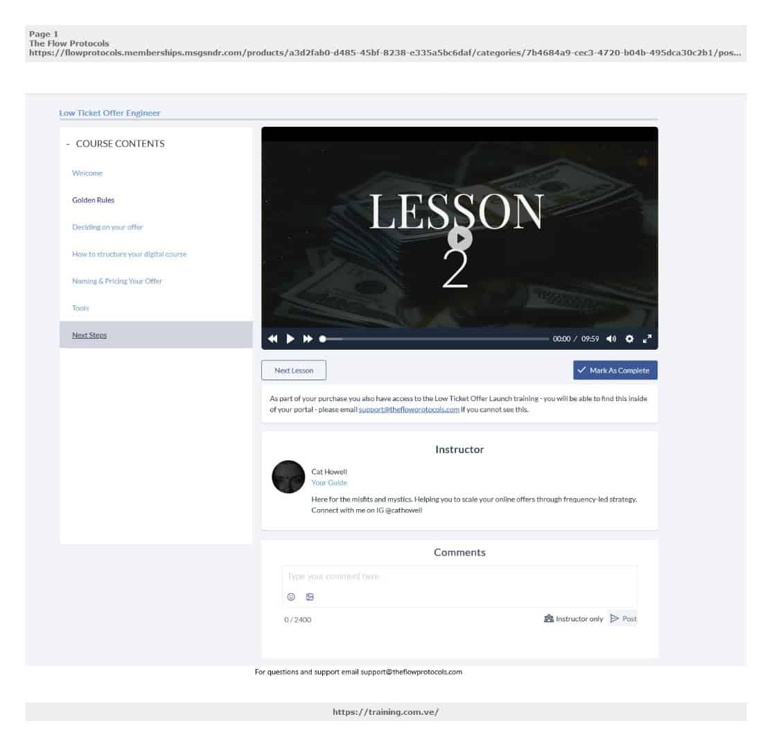 ✅ Low Ticket Offer Engineer — 7 video sessions covering how to structure and price a low-ticket offer that converts inside a Meta ads funnel. Total: 1h 35m 25s.