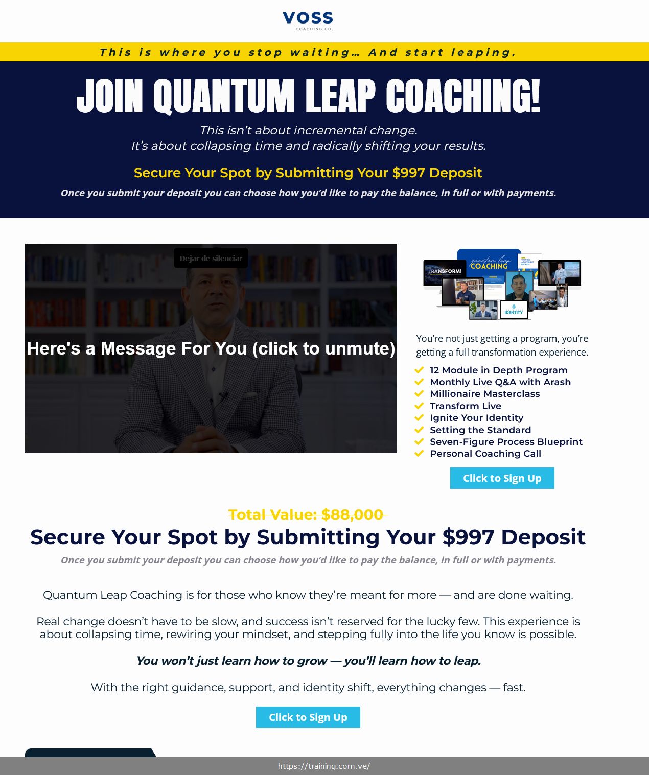Quantum Leap Coaching was created by Arash Vossoughi, Co-Founder and President of Voss Coaching Co. Before founding his company, Vossoughi was VP of Sales at Proctor Gallagher Institute, where he built a sales system that generated over $100 million in revenue. He is the co-author of The World Class Wealth Mindset: Four Pillars to Building Personal Freedom (G&D Media, 2024) and co-hosts the Seven Figure Standard podcast, which has published over 125 episodes on Spotify and Apple Podcasts.