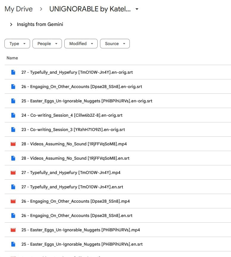 Unignorable is delivered as downloadable video files (.mp4), downloadable PDF resources, a .docx workbook, and a .pptx template. The complete package is 3.90 GB. Video lessons include English subtitle files (.srt) for accessibility. All content is self-paced with no live sessions required.